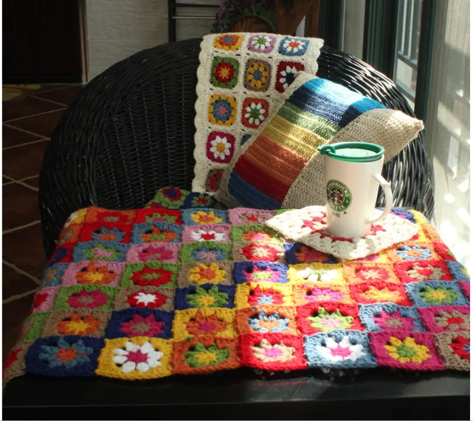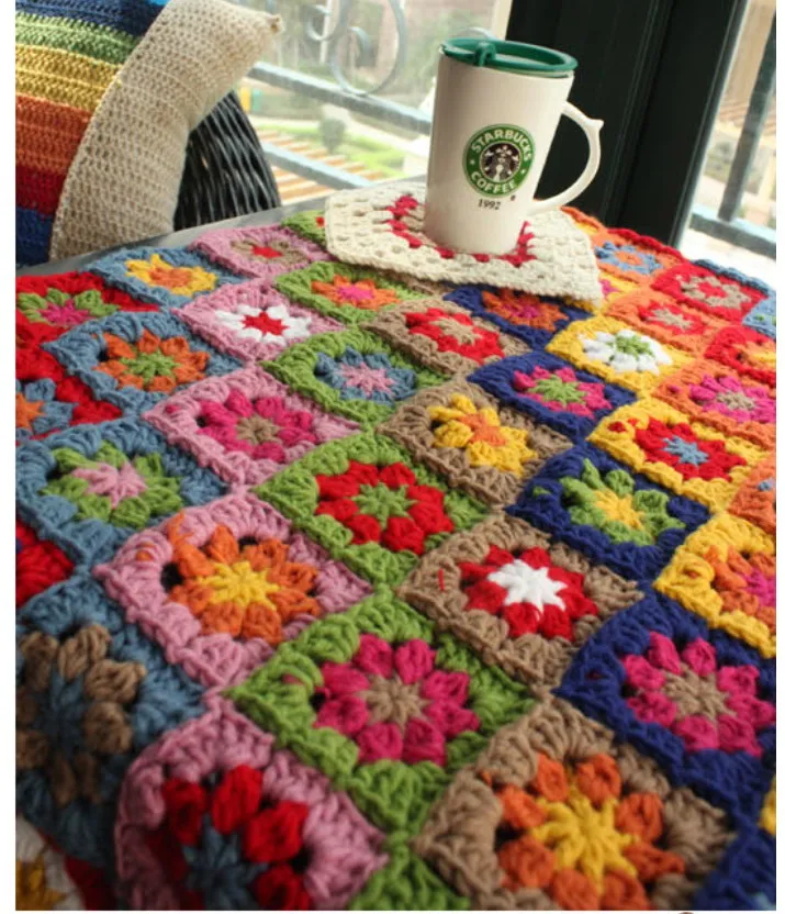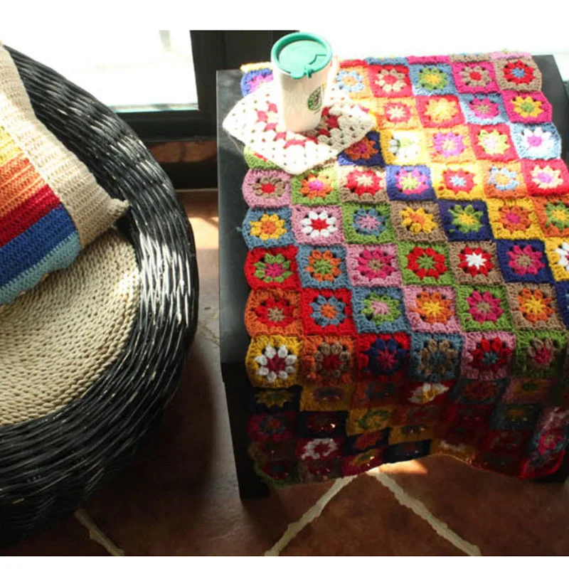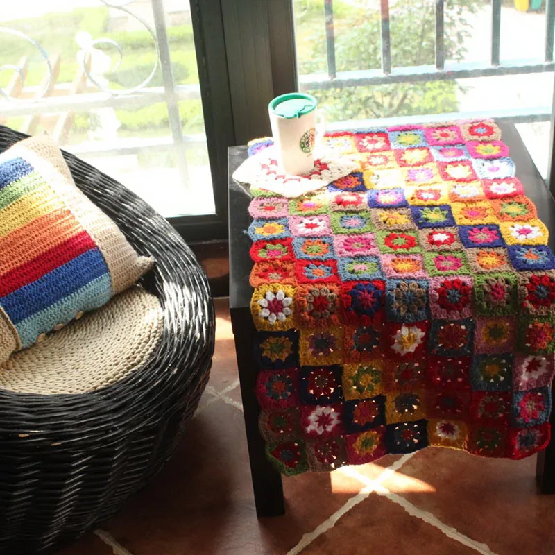 DIY Colourful Daisy Handmade Hand Hook Tablecloth Fashion Carpet Crochet Blanket Yoga Bolster Cushion Party Crochet Table Mat